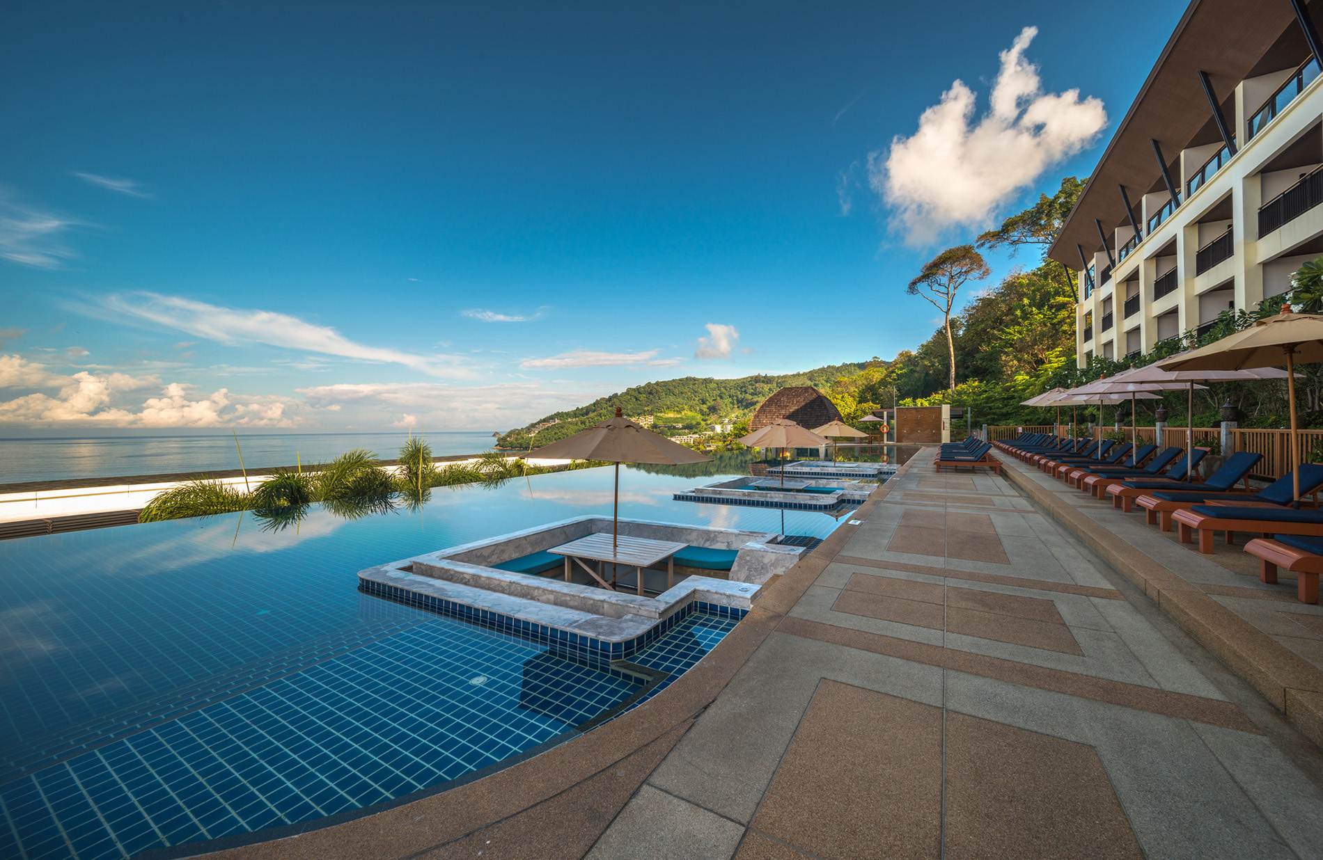 The resort features beautifully furnished Deluxe Rooms, Pool Access Rooms, and Sea View Suites, each designed with Thai-inspired décor and private balconies. Guests can relax by the infinity pool with panoramic views, unwind at the Cha-Da Spa, or savor delicious Thai and international cuisines at the in-house restaurant.